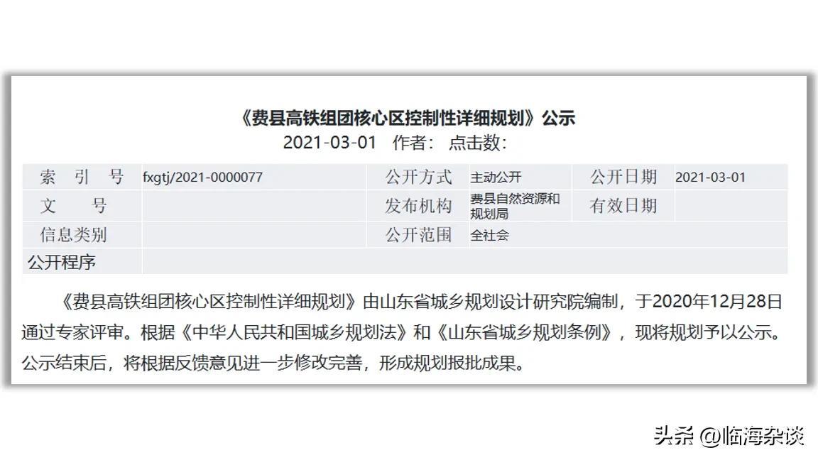 依托于铁路带了的便利,费县政府于2021年3月印发了《费县高铁组团核心区域控制性详细规划》,明确指出要发展高铁片区。