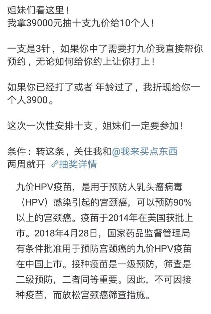 和我一起来!不知道大家最近有没有关注微博上的那些抽奖博主,真的超离谱。比如下面这个,直接抽十个人送九价。