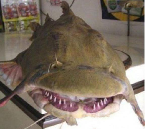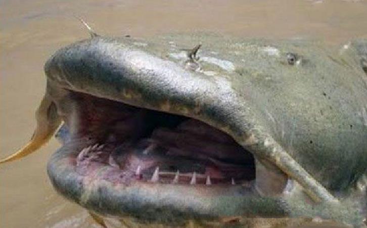 坦克鸭嘴印度水怪Goonch是世界上最大的淡水鱼种之一。生物学家杰若米.华德逮到其中一条,重73公斤,将近183公分长,堪称为这类物种创下世界纪录。他表示:“如果你被它抓住,想逃都逃不掉了。”去年,一名十八岁的尼泊尔人被一只像是“加长版的猪”拖下河里失踪。
