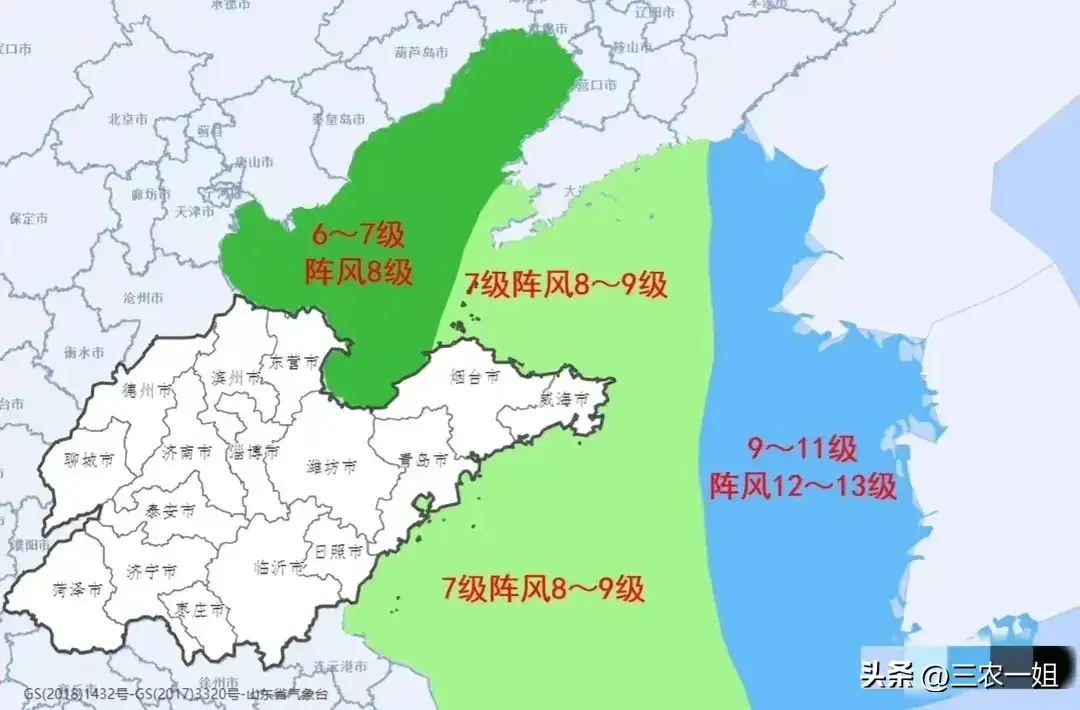 台风影响山东最主要的是大风,所以从明天开始山东迎来了三天的大风,风力一般在5~6级,海面风力在8~9级,12号会出现有效的降雨!