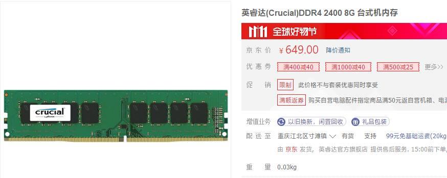内存开始跌了?单条DDR4 8GB降至600元