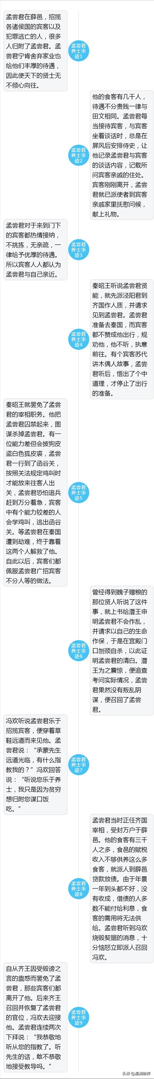 孟尝君养了3000士,这些士给孟尝君的人生带来了很大的帮助。大家可以将孟尝君的事迹一一罗列,看一看孟尝君是如何养士的。