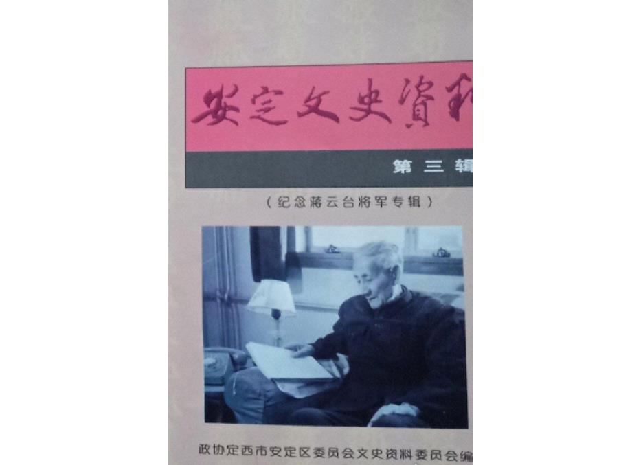 蒋云台(1905-1987年),甘肃定西人。早年毕业于陇东讲武学堂,后又入陆军大学高教班学习。扶眉战役时任国民党第一一九军副军长兼第二四四师师长,次年在武都率部起义后,曾任中国人民解放军西北军区独立第三军军长、甘肃省政协副主席等职。1987年在兰州病逝,终年82岁。