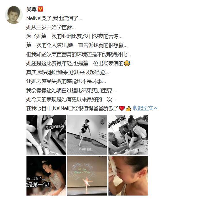 吴尊曾在微博上发过女儿neinei参加芭蕾舞蹈大赛的记录,虽然neine很认真也很努力的准备了,但是在众多出彩的舞者中,neinei还是落败了。