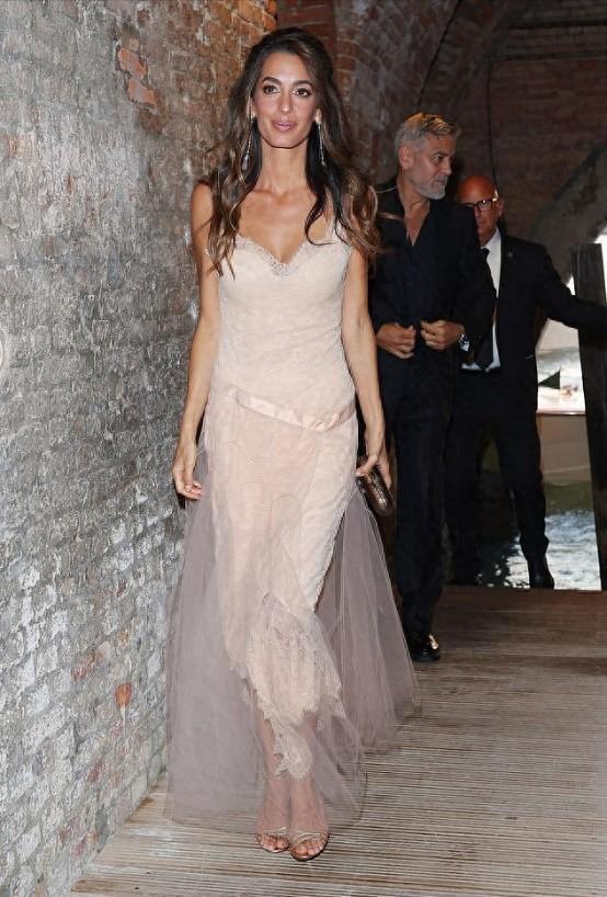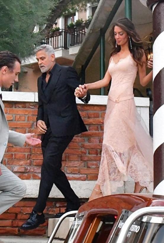在处处需要坐船的威尼斯,克鲁尼小心翼翼拉着阿迈勒的手,阿迈勒的粉色纱裙随风飘动,这一场面唯美而梦幻,好像电影中的场景。