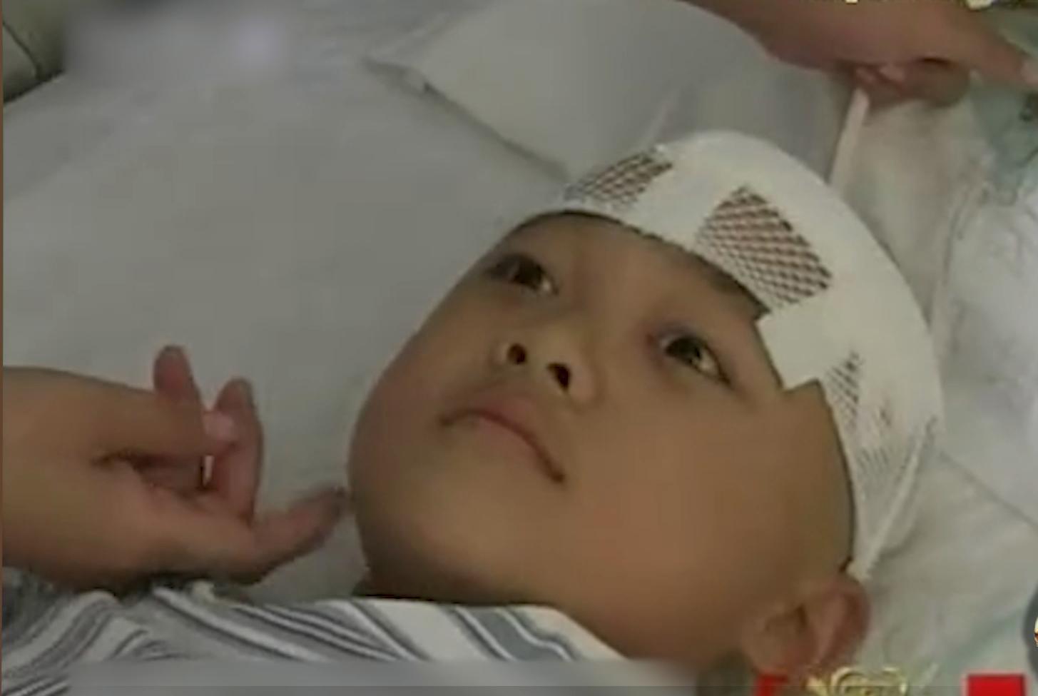 原来儿子长不高,是因为他的左脑有个7公分的囊肿,压迫了脑垂体,导致生长激素极少。唯一令李彩霞感到欣慰的是,囊肿发现的够早,如果及时切除,很有可能会再长高。
