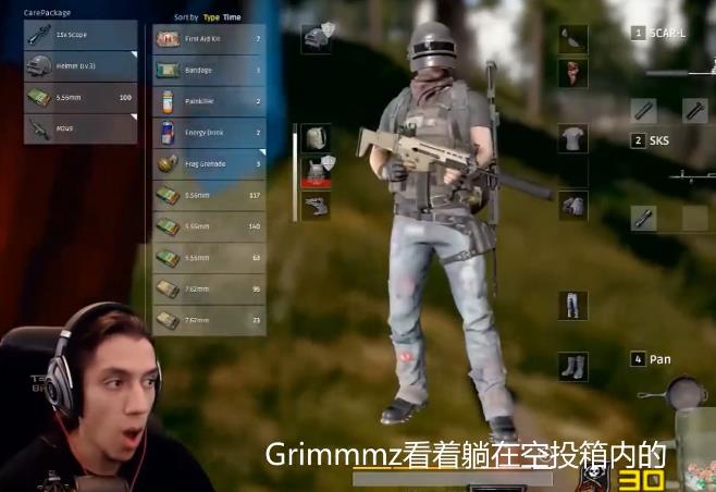 随后更加具有戏剧性的一幕出现了:Grimmmz看着躺在空投箱内的M249和100发子弹哀嚎:"What the fxxk is going on?"。