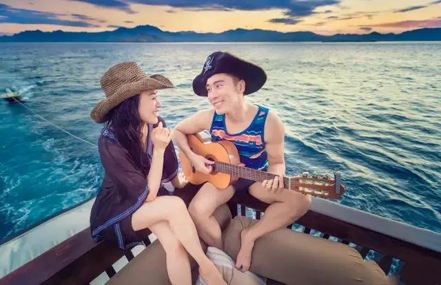 开播后,两个人弹着吉他,唱着歌,浪漫的海边晚餐,钟丽缇被张伦硕的歌声打动。