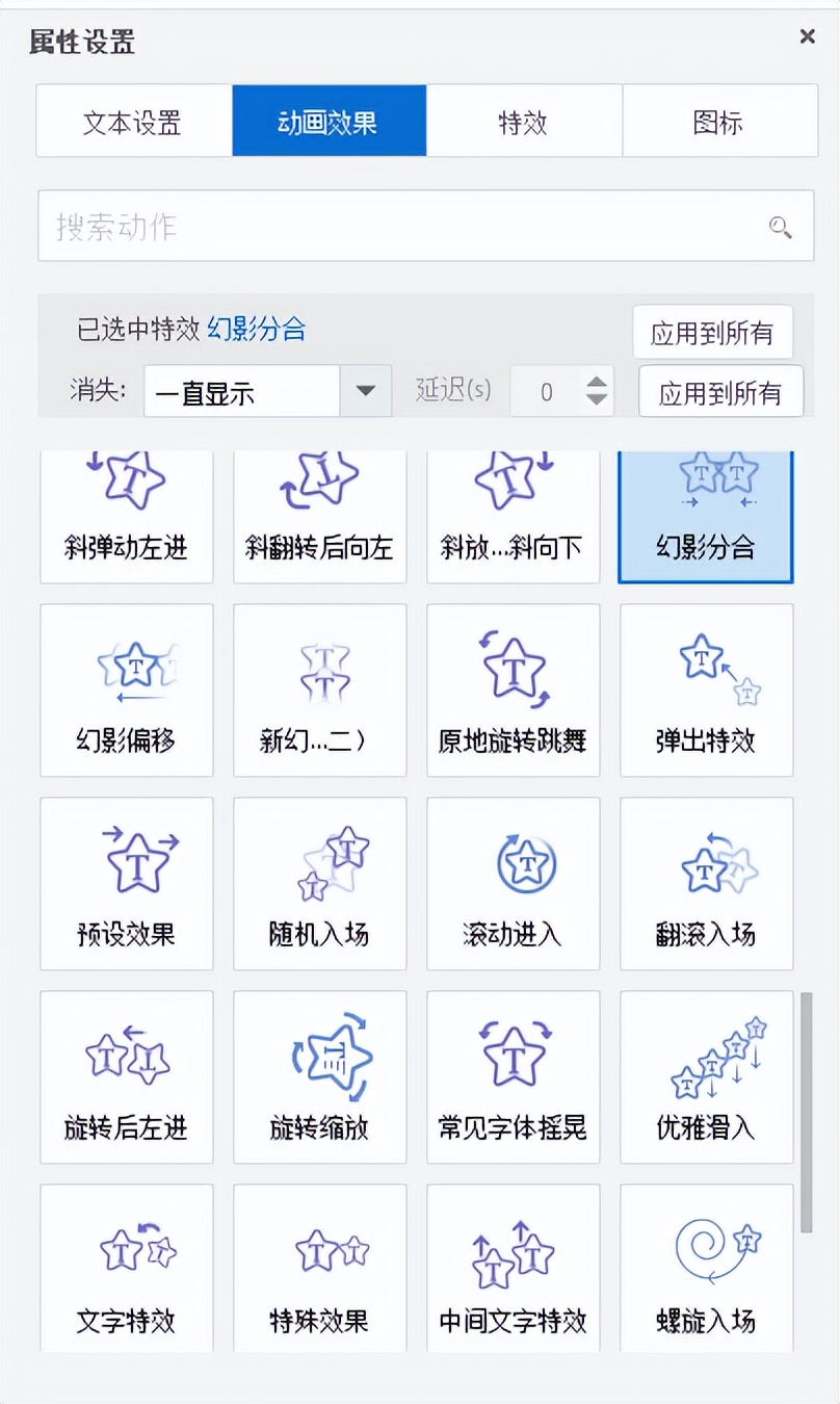 你可以对文本进行设置,通过简单操作,实现多种炫酷动画特效;