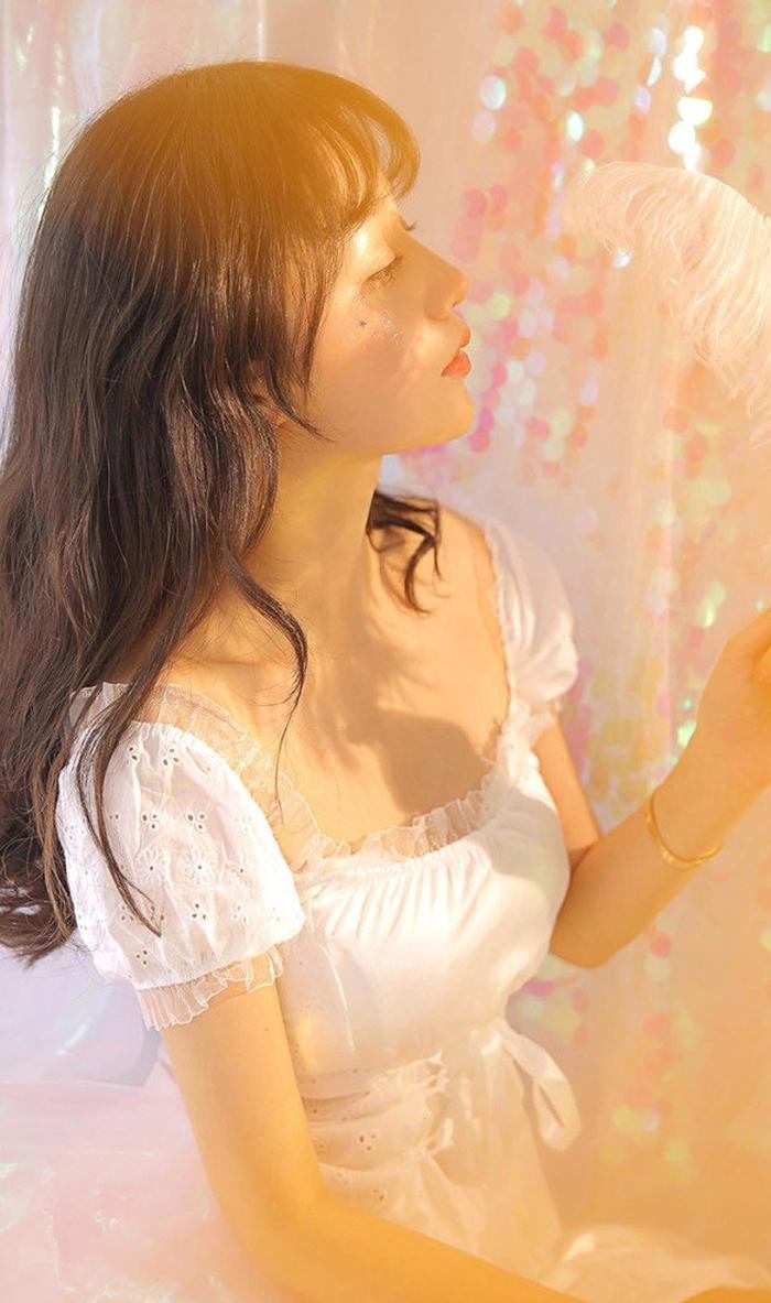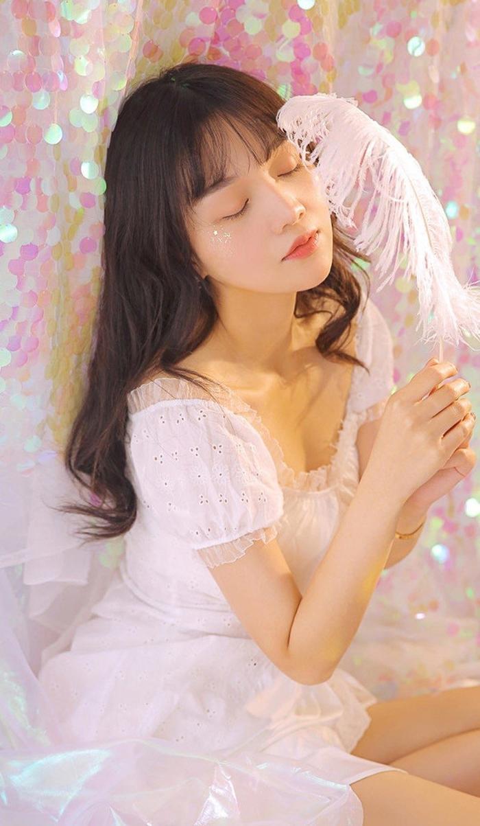 冷艳美女纯白蕾丝裙修长美腿唯美意境写真集