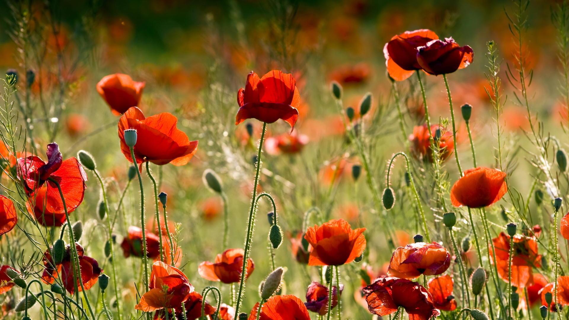 满山满谷的罂粟花在风中悠悠的摇曳,