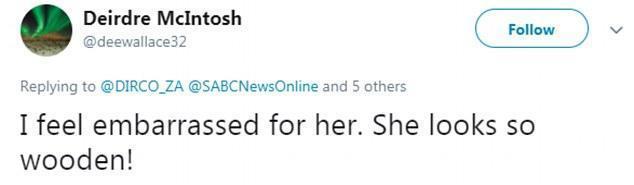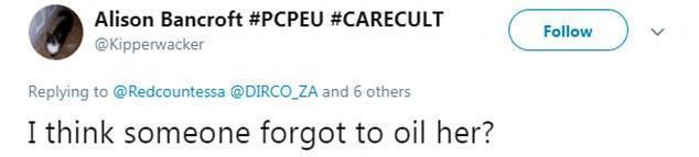 网友称,我真是为她感到尴尬啊,她看起来是这么木讷。天空新闻记者艾伦·麦吉尼斯补充道:特蕾莎·梅被拖到舞池里,不得已才跳舞的。