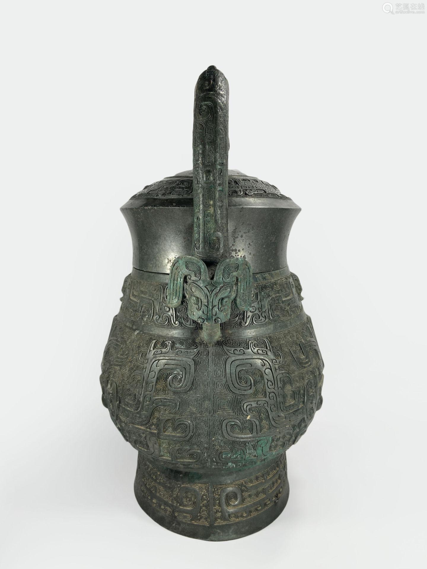 西周饕餮纹提梁卣-侧面
