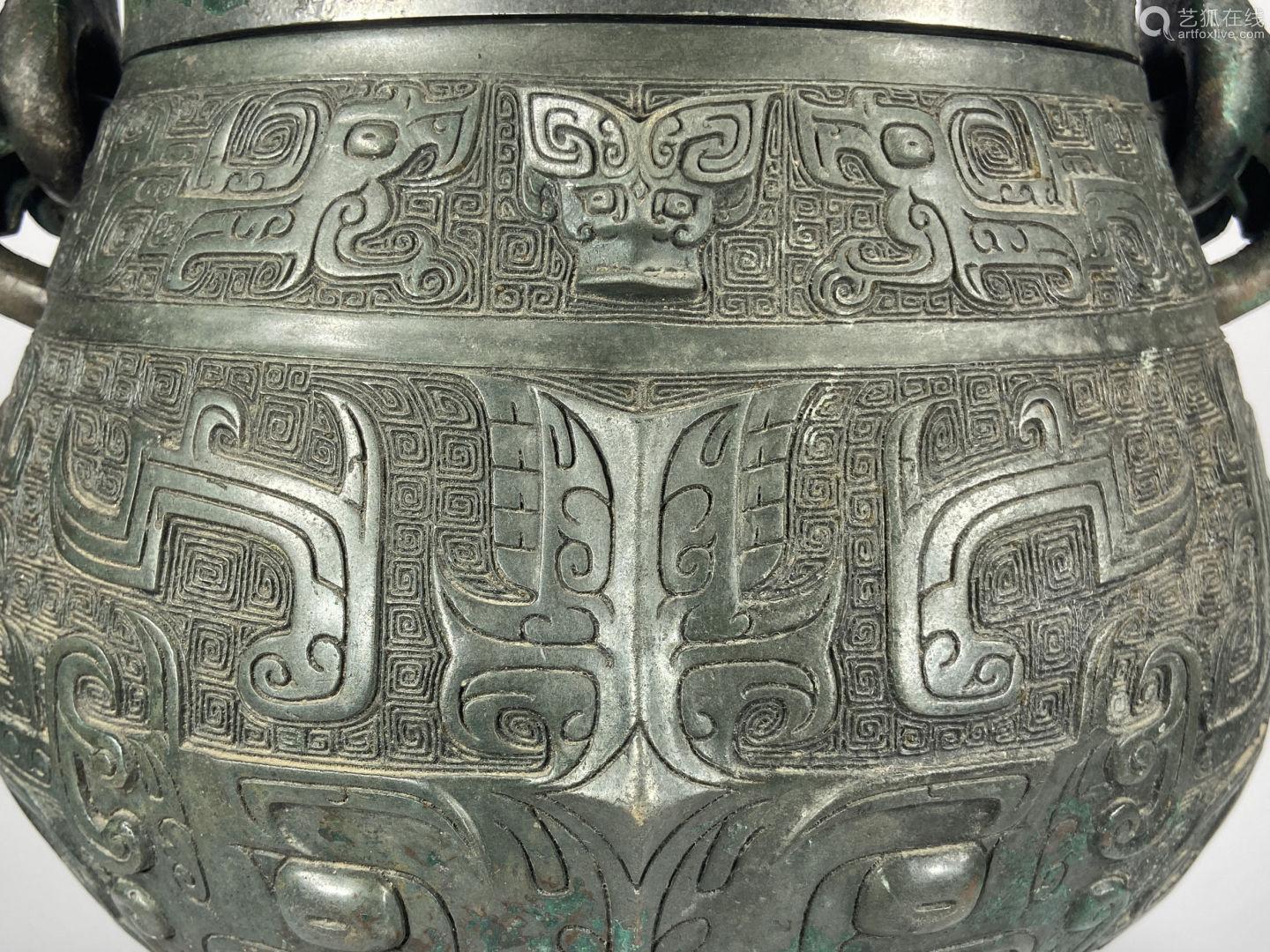 西周饕餮纹提梁卣-正面