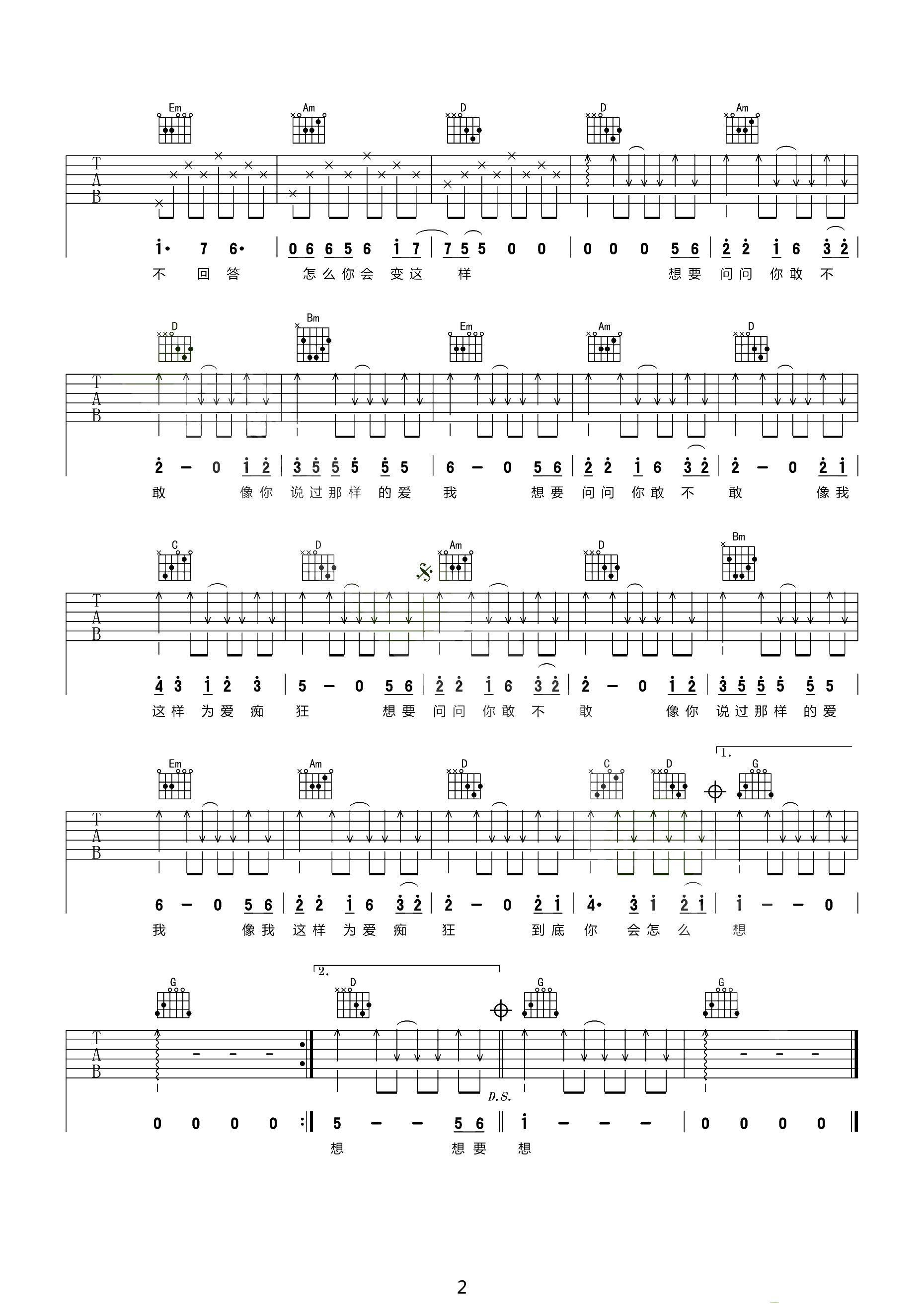 刘若英《为爱痴狂》吉他谱