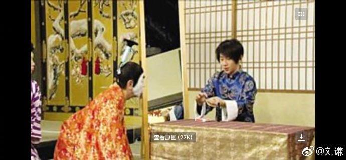不仅如此刘谦还发了一张刘谦坐着,天皇跪着的图片,并说明是扬我国威。