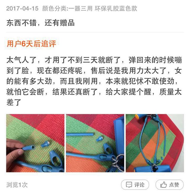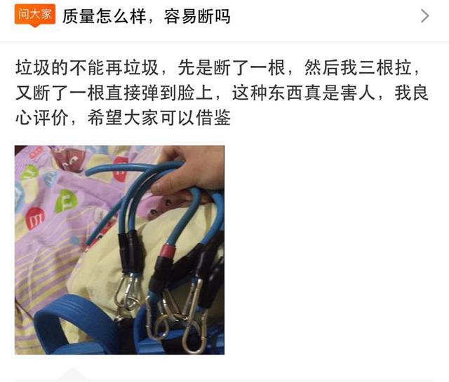 在这里小编不提产品名称,避免黑人之嫌,网上30-50的价钱不等,但这样的东西的确要和大家提个醒,如果家里有此类健身用品的注意了,请谨慎使用,真的挺危险,一旦断裂伤的就是脸。