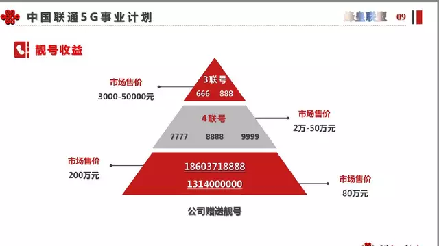 目前3连号的靓号市场价格在3000-50000之间,4连号的靓号价格在2万-50万,靓号在你团队开卡量达到一定数量的时候,联通公司会送我们。