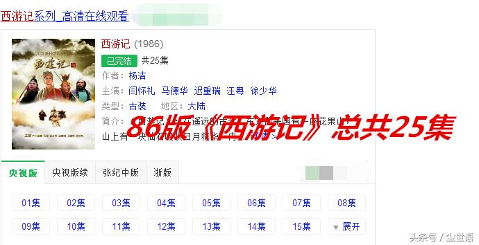 对于这个问题,不知道有多少人存在这疑惑,很多小伙伴们应该觉得这部《西游记》应该有上百集,最不济也应该有个七八十集吧!但是本期小语可以很负责任的告诉大家,这部很多人以为至少几十集的央视86版《西游记》才25集,才25集,才25集啊!(重要的事情说三遍),对于这个结果,不知道有多少小伙伴们之前就知道呢?