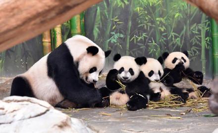 全球唯一大熊猫三胞胎9岁生日