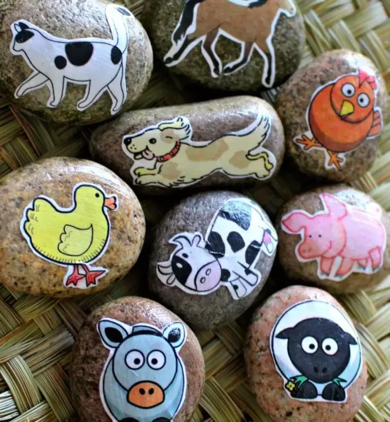 咱可以找到家里一些不要的绘本、图画,把上面的图画剪下来贴在石头上也可以!