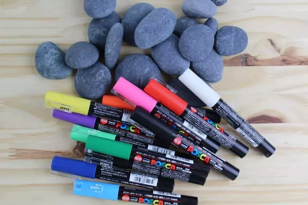 准备一些彩色笔或者颜料,以及洗干净了的石头。