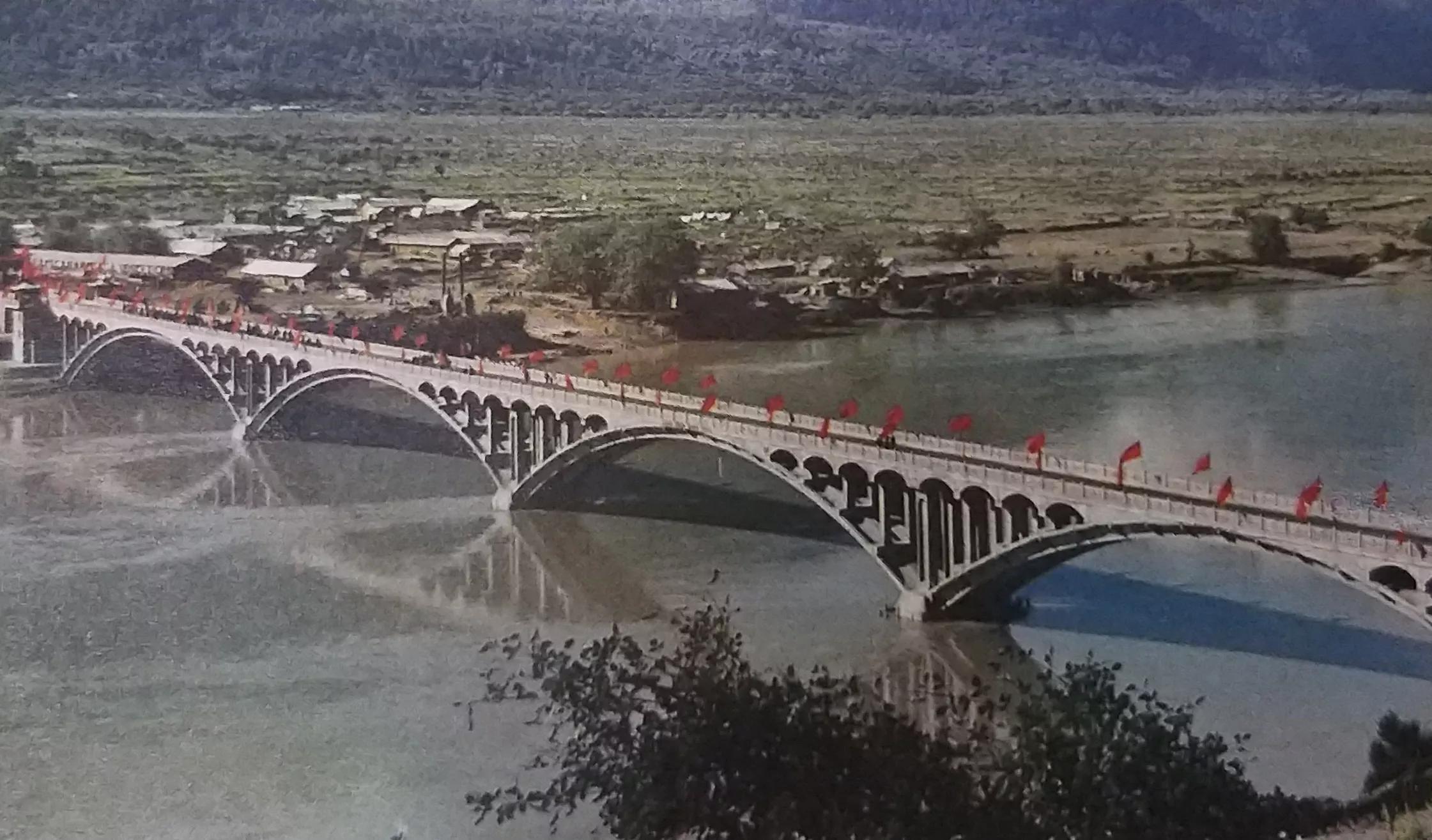 西藏雅鲁藏布江上的双曲拱桥——岗嘎大桥。