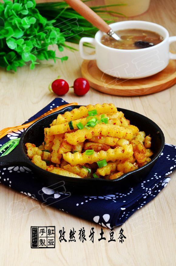 狼牙土豆条据说是成都地方风味小吃,在四川可比麦当劳薯条,现炸现卖,香飘满街。其制作方法极其简单,味道可口,不知怎么就已经成为现在中小城市街头小吃之一,深受孩子和年轻人的青睐!