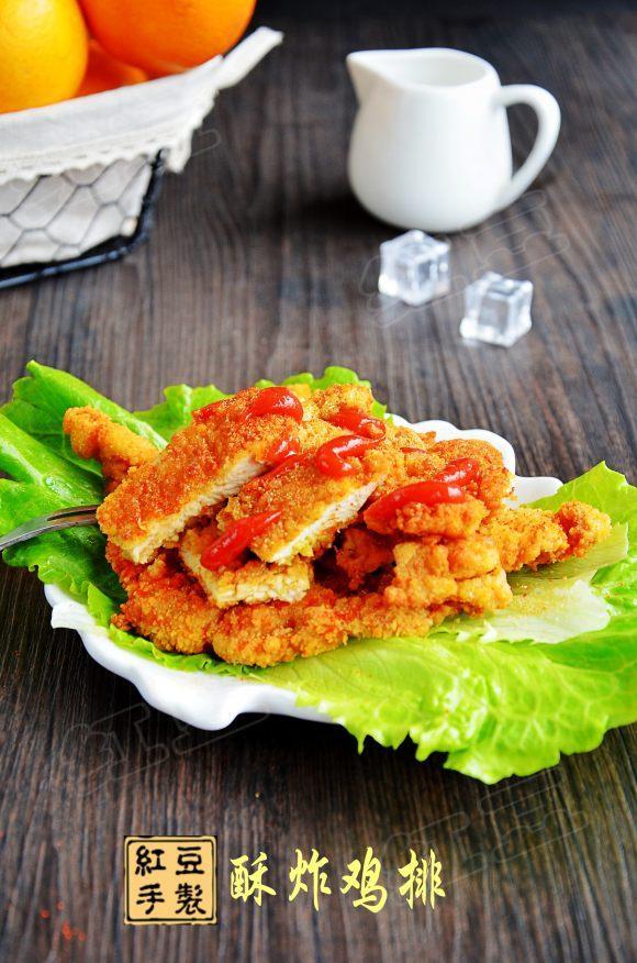 香酥炸鸡排炸浆细滑轻稠,炸制前裹上薄薄的一层面包糠,经温火油炸。炸出的鸡排金黄诱人,脆香蓬松,咬上一口,口齿留香,油汁外溢,嚼劲十足,在搭配一些沙拉酱或者番茄酱绝对是诱人的美味!