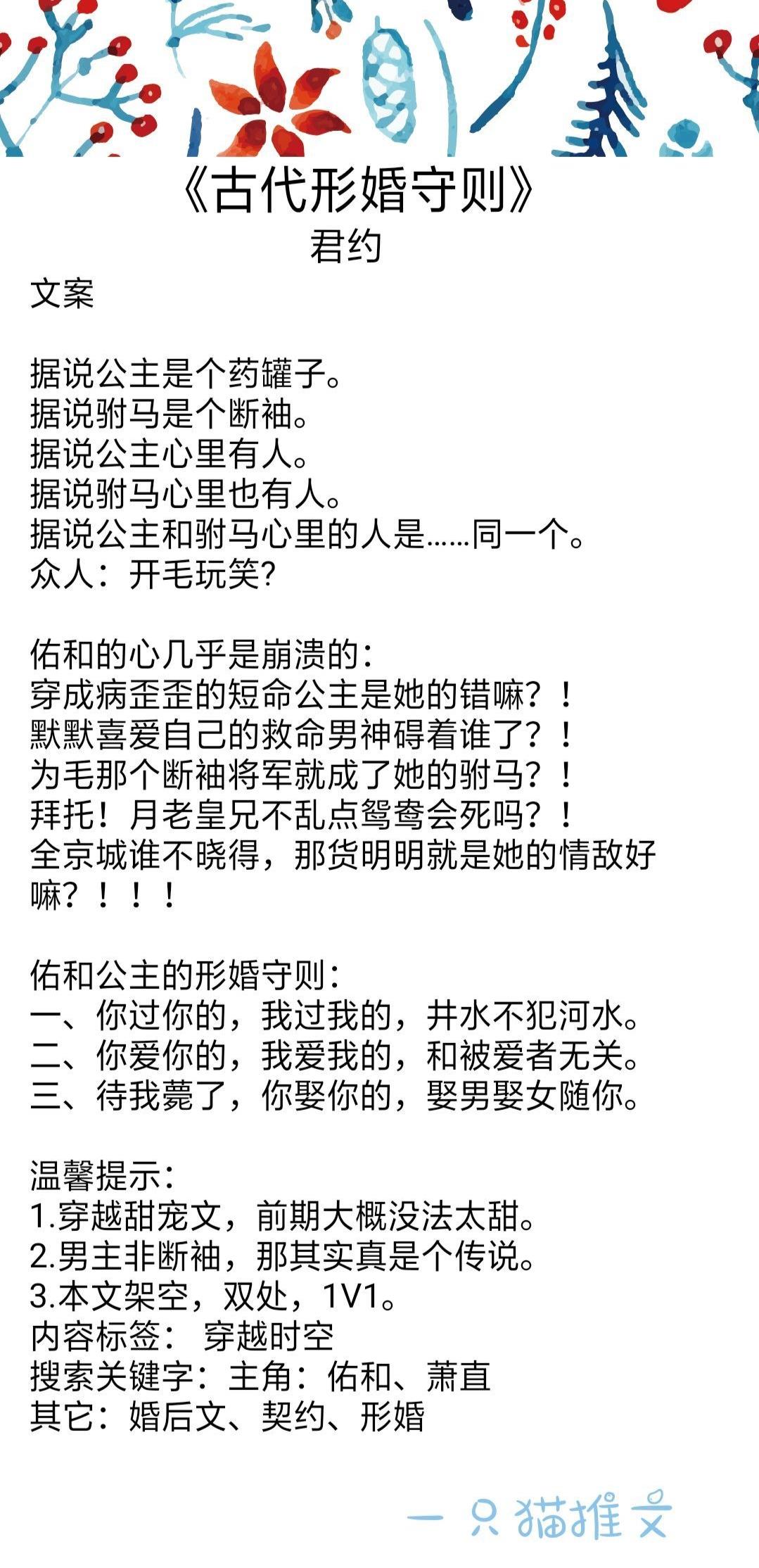 病弱公主被皇帝赐婚给传闻中的断袖将军男主,因为一些意外,女主误会男主是个断袖,以为男主跟自己喜欢同一个男孩纸。男主暗恋女主多年,但他就是不说,话特别少,对女主就是默默宠溺,整体一篇甜甜的婚后古言。