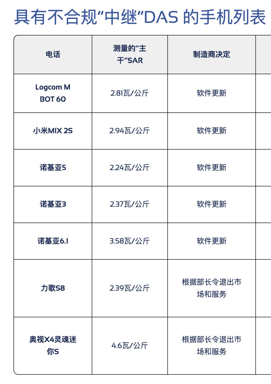 这些手机的肢体SAR数值,全都超过了当时既定的2W/kg标准。