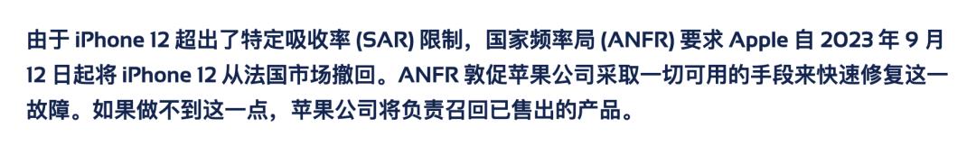 于是乎,ANFR便向苹果发出了“最后通牒”,要求阿果暂停销售,并采取一切手段,降低iPhone 12的SAR数值。