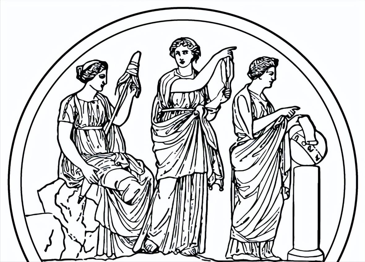 在后来的古希腊神话里,命运被具象化了,变成三个满脸皱纹的老婆婆,她们一个负责纺织生命之线,一个掌管生命之线的粗细长短,一个负责剪断生命之线。这三个具象化的命运女神地位崇高、法力无边,凌驾于诸神之上,就连宙斯也无法控制她们。这是因为命运女神后面跟着仆从复仇女神,复仇女神会对那些反抗命运的人施以最严厉的报复。