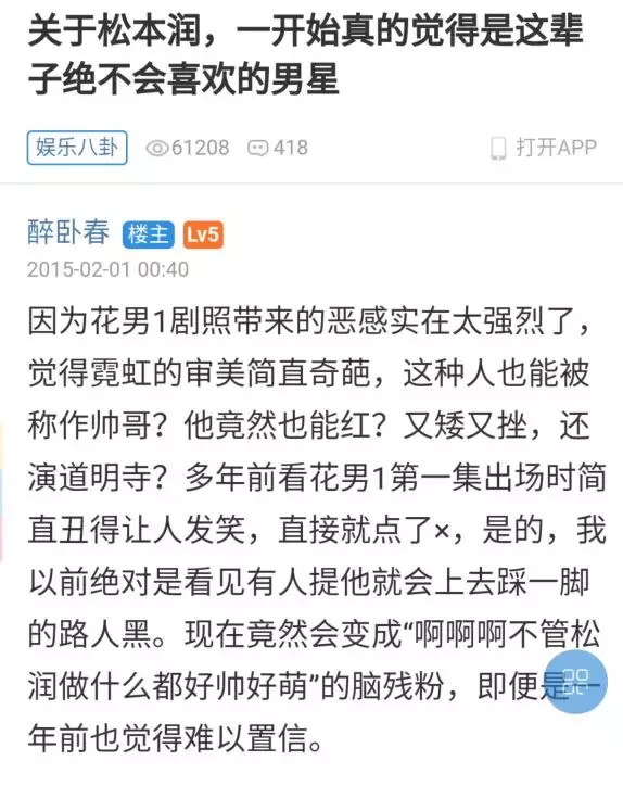 楼主从“这种人也能被称作帅哥?”到“啊啊啊不管松润做什么都好帅好萌”,这种感觉你是不是也有过呢?反正部屋君现在觉得松本润是特别特别的有魅力,即使是长相上有着高鼻梁、长睫毛、俊眉毛的松本润也算不上丑。