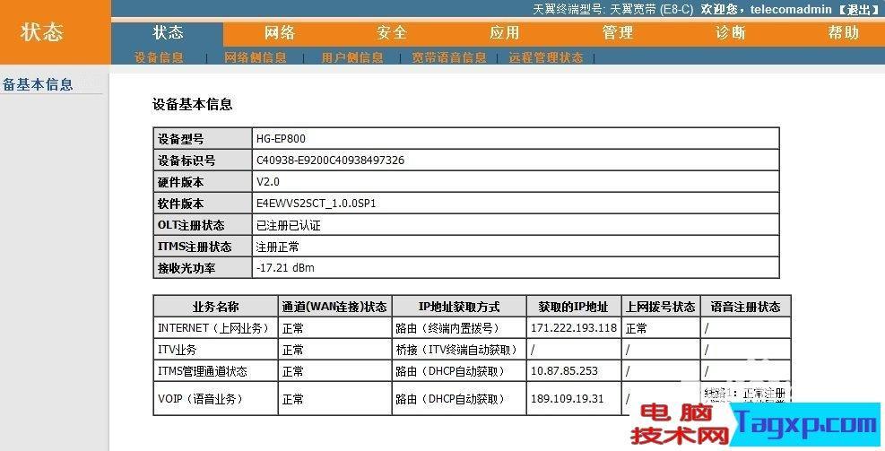 4,现在用帐号telecomadmin和密码18j36GH0重新登录192.168.1.1,就能设置自动拨号和无线功能。