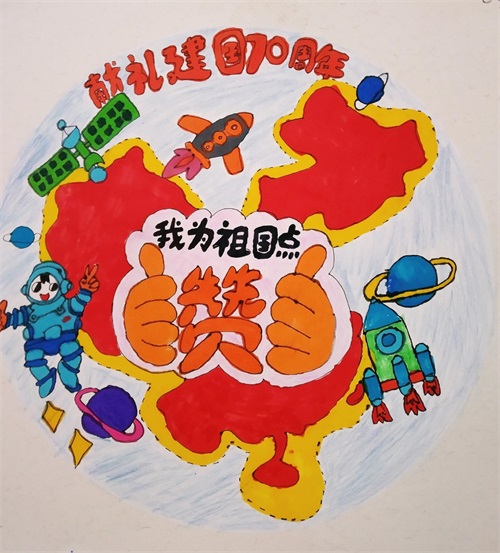 国庆节快到了,全国人民都在欢歌热舞,用自己的方式庆祝70周年国庆节。少年宫的小朋友们也进行了这一主题 的绘画。小朋友们选择的题裁各有侧重,笔触虽然稚嫩,但是构图用色都已经很棒啦!一路一带,嫦娥四号成功登月 玉兔二号开启月球探险,载入史册的重大事件,在人类历史上也有非常重要的意义,更是我们的骄傲,不少关注时事的小朋友都选了航空题裁,尤其难得!