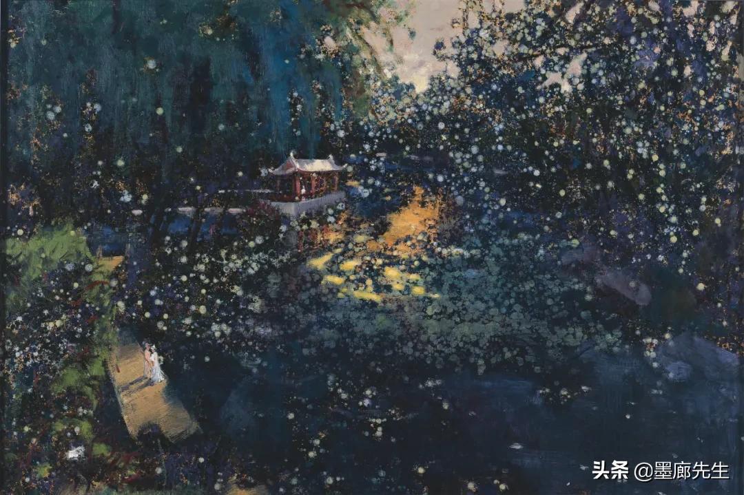 17.陆爱民《暮色下的朝阳公园》97×146 cm 油画