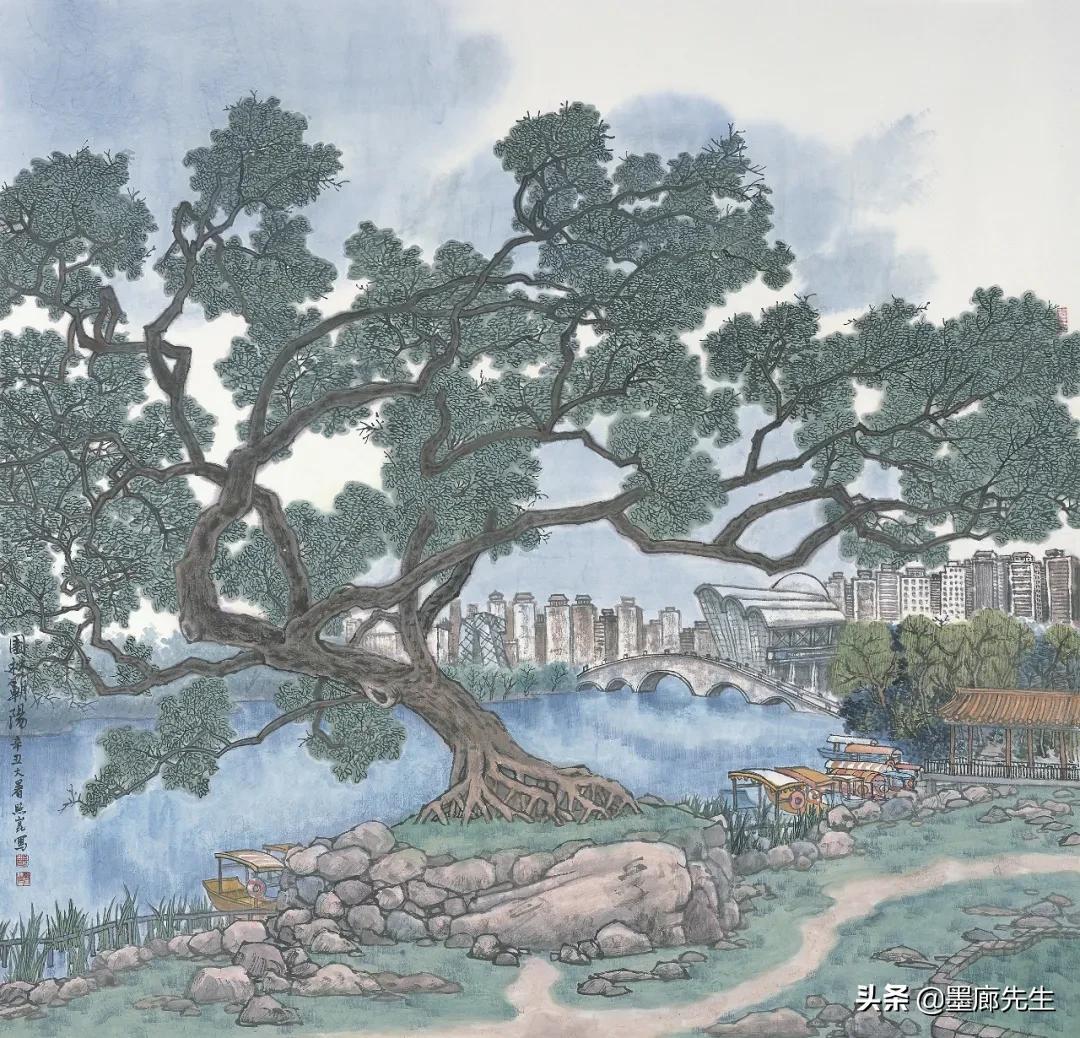 15.白照崑《园林朝阳》144×150 cm 中国画