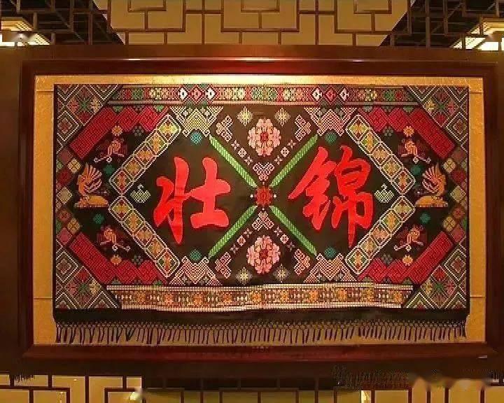 老三看见妈妈织的那幅壮锦就挂在厅堂的中央,仙女们都仿照着壮锦在织呢!老三说明了来意,仙女们说等仿照着织完了就把壮锦还给他。