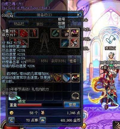 白虎之力这款称号一直被玩家们称为土豪的专属,在2010年春节的新年套装中,购288元套装就可以获得此称号。现在的官方活动之中已经无法获得,如果想要的话只能通过从其他玩家的手中购买。白虎之力如此的受玩家欢迎还是因为其属性的强悍。在前冲时有几率增加8%的移动速度和攻击速度,这简直就是PK神助攻,因此这个称号在当时一度被称为PK第一称号。然而当时由于心疼没有购买这个套装,现在只能偷偷的后悔了!