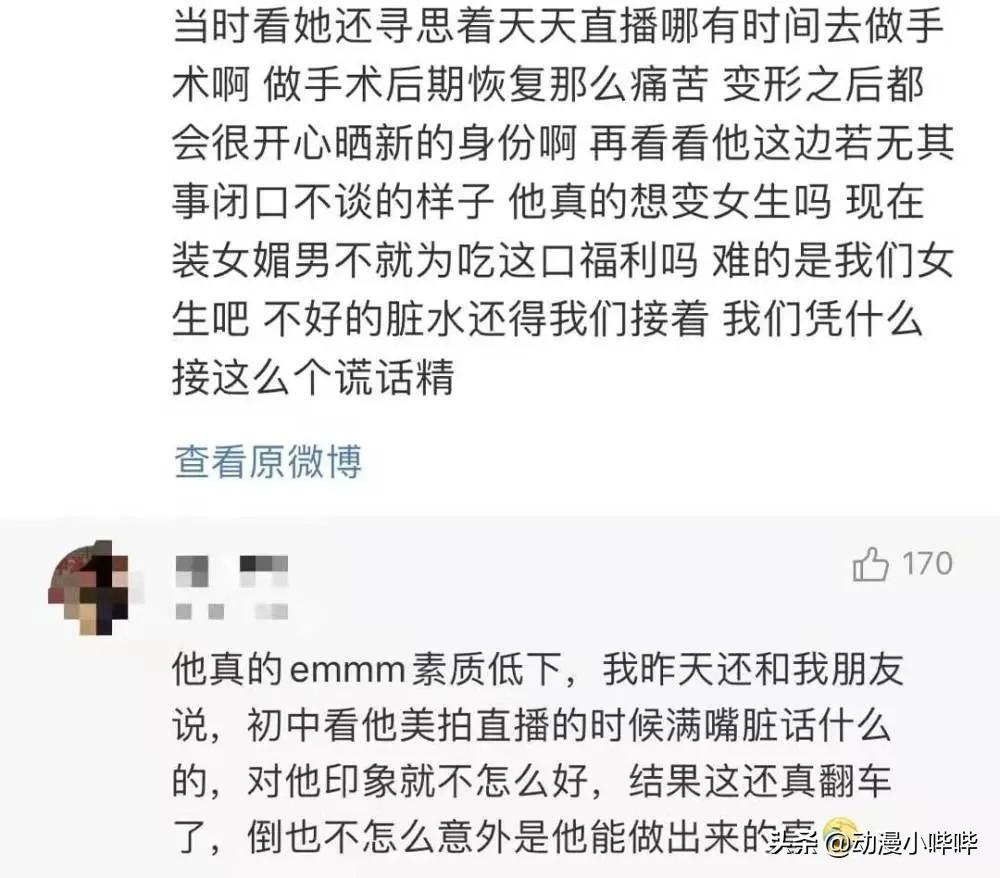 不少网友在看到艾比“变性”成功后,都纷纷留言发来贺电,而基于艾比这位“女装大佬”在网络上的知名度,很多媒体也相继发文祝贺。可是就在大家都以为艾比会成为第二个“金星”,名正言顺地以“女生”身份出现在公众视野里时,没想到仅仅过了一天,整个关于艾比“变性”的事件就出现了反转。