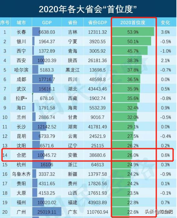 甚至他们的首位度,比合肥在安徽的首位度,还要高很多。