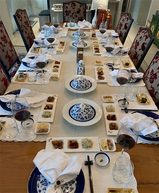 但桌上的红酒杯与青花瓷形成中鲜明的对比,这个中西结合的氛围也可以体现出周立波虽然人在美国,但依然对祖国文化念念不忘,而且从这套餐具中就可以体现周立波平常生活是多么的奢侈了。