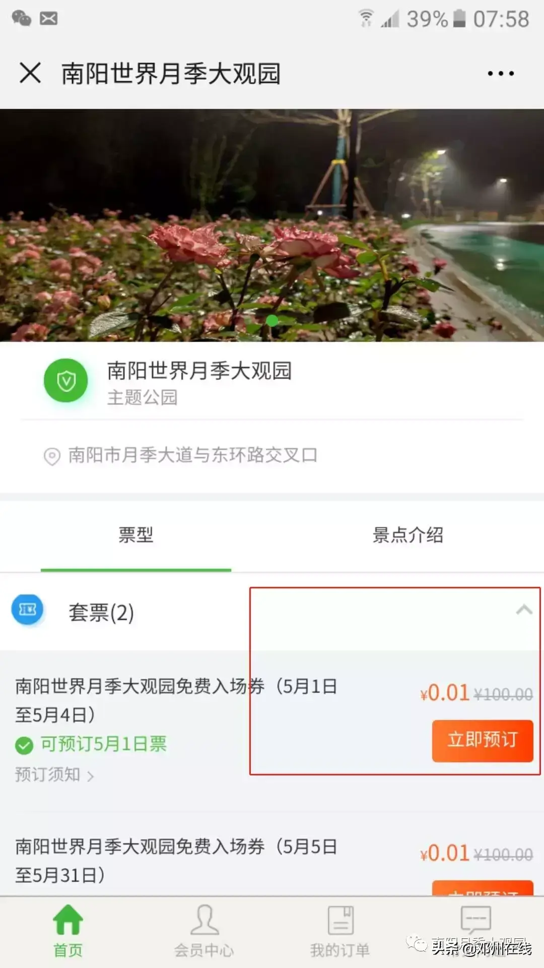 一、点击“立即预定”,选择要购买的套票,有两种套票