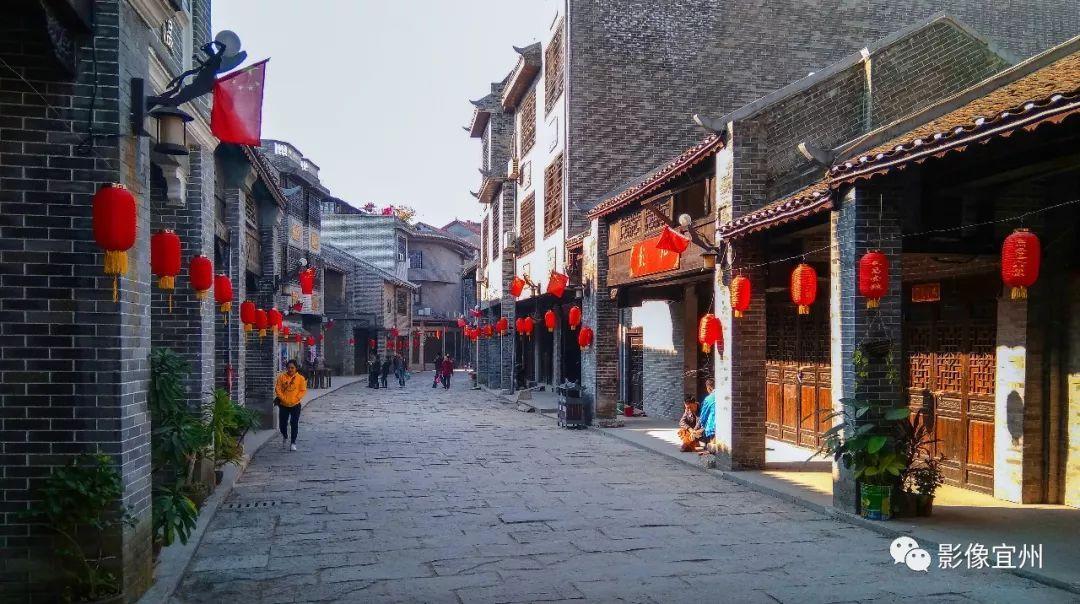 漫步古镇街巷,老街的骑楼和青石板路在大红灯笼映衬下,透着灵气的古镇,显得绚丽多彩,古朴风韵,时光在这里交错。