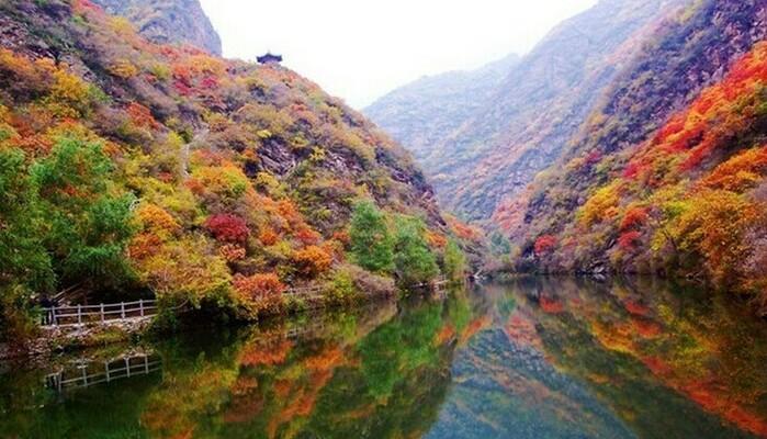 一座座石峡,如一尊尊巨佛东望蓬莱仙岛;一片片石林,如玉笋擎天;细细观赏,有如芙蓉相辉映,更如玉女本瑶台。水影大侠,峡浸幽水。峡外拥红倚翠,峡内争显壮伟,给人以恢弘壮阔之气。唐时一佚名文人,欲走"终南捷径",在此修行,曾留下著名的《大峡谷》一诗:东西两侧帷垂,龙吟虎啸九天回。金水潺潺韶乐唱,敢于群峰争高魁。