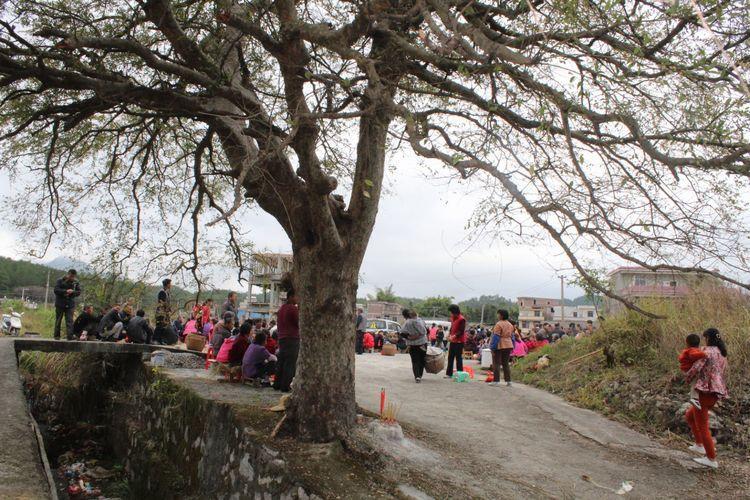 一大早,三个村的村民都赶过来参加庙会,不一会就热闹起来了,村民们各司其职,齐聚一堂,手持饭票,拥簇欢闹,用丰盛的菜肴庆祝,祈求风调雨顺,五谷丰登。