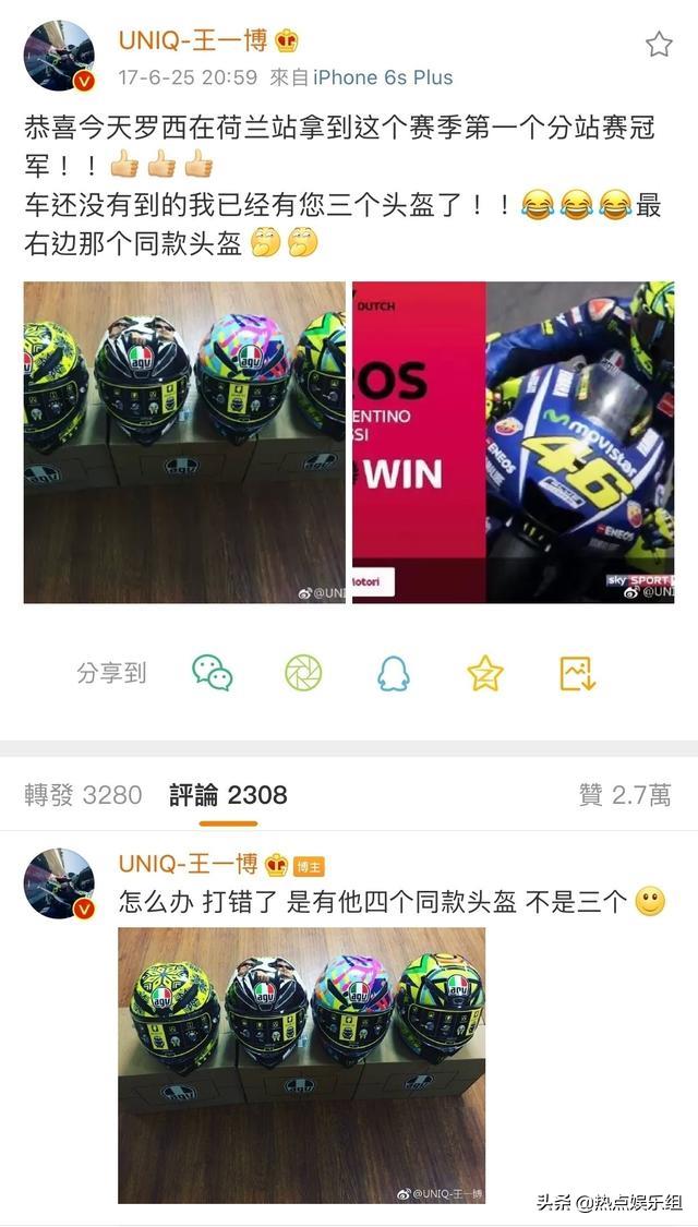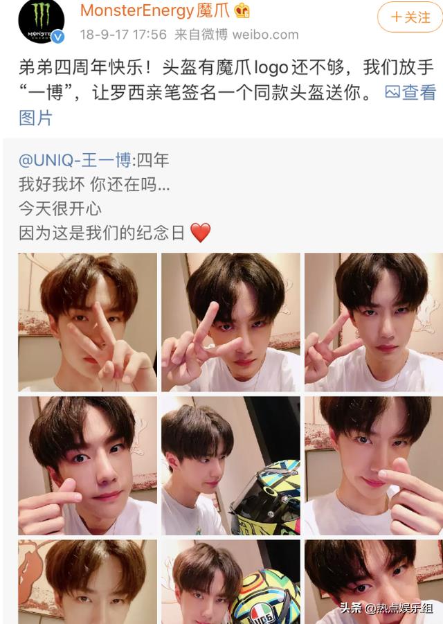 看来王一博不仅追星成功,共同的金主“魔爪”也不止一次地艾特过王一博,时间从18年开始,之后在王一博庆祝出道4周年的时候,“魔爪”还曾为王一博送出了有罗西签名的头盔,他和罗西或许还有交情也说不定。