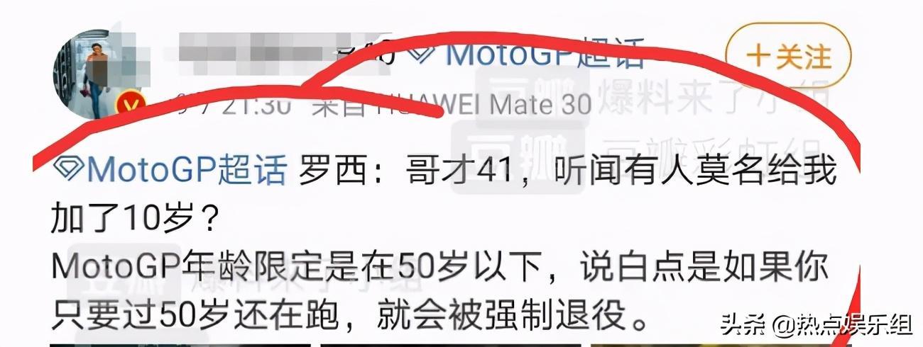 此外,网友们还扒出了更多的疑点,比如摩托车选手的年龄限制在50岁,他把罗西说成50岁又显得很不专业,而且,要想进入他的粉丝群,其中一个问题就是回答罗西的年龄。