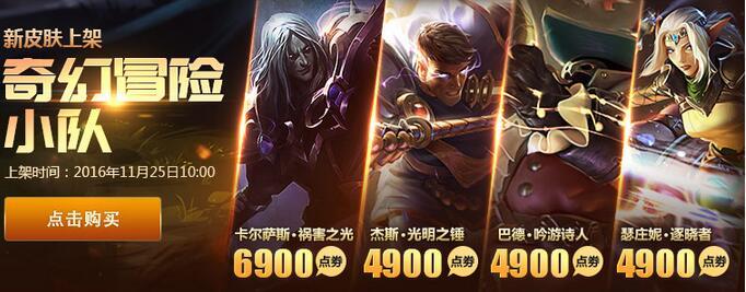 LOL于11月25日上架了4款全新皮肤,合称为奇幻冒险小队。为此小编特意列出四款皮肤的技能的效果和游戏中的模型,以供小伙伴们进行参考。